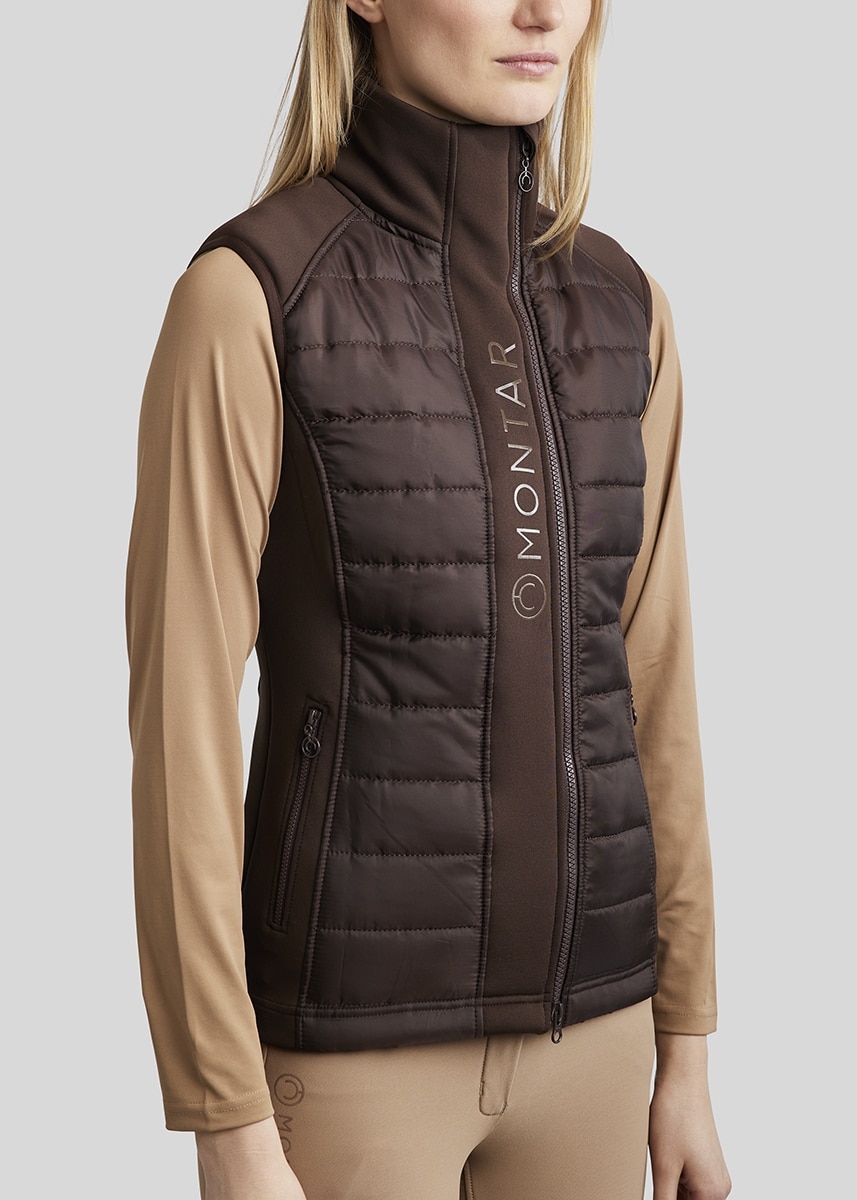 Emma er vores bud på den perfekte ridevest! Stoffet er smuds- og vandafvisende samt fugttransporterende, præcis som du kender det fra vores Emma-jakke. Vesten har et smukt, quiltet stof på forsiden og bagsiden, og siderne er i Softshell-stof, der giver en